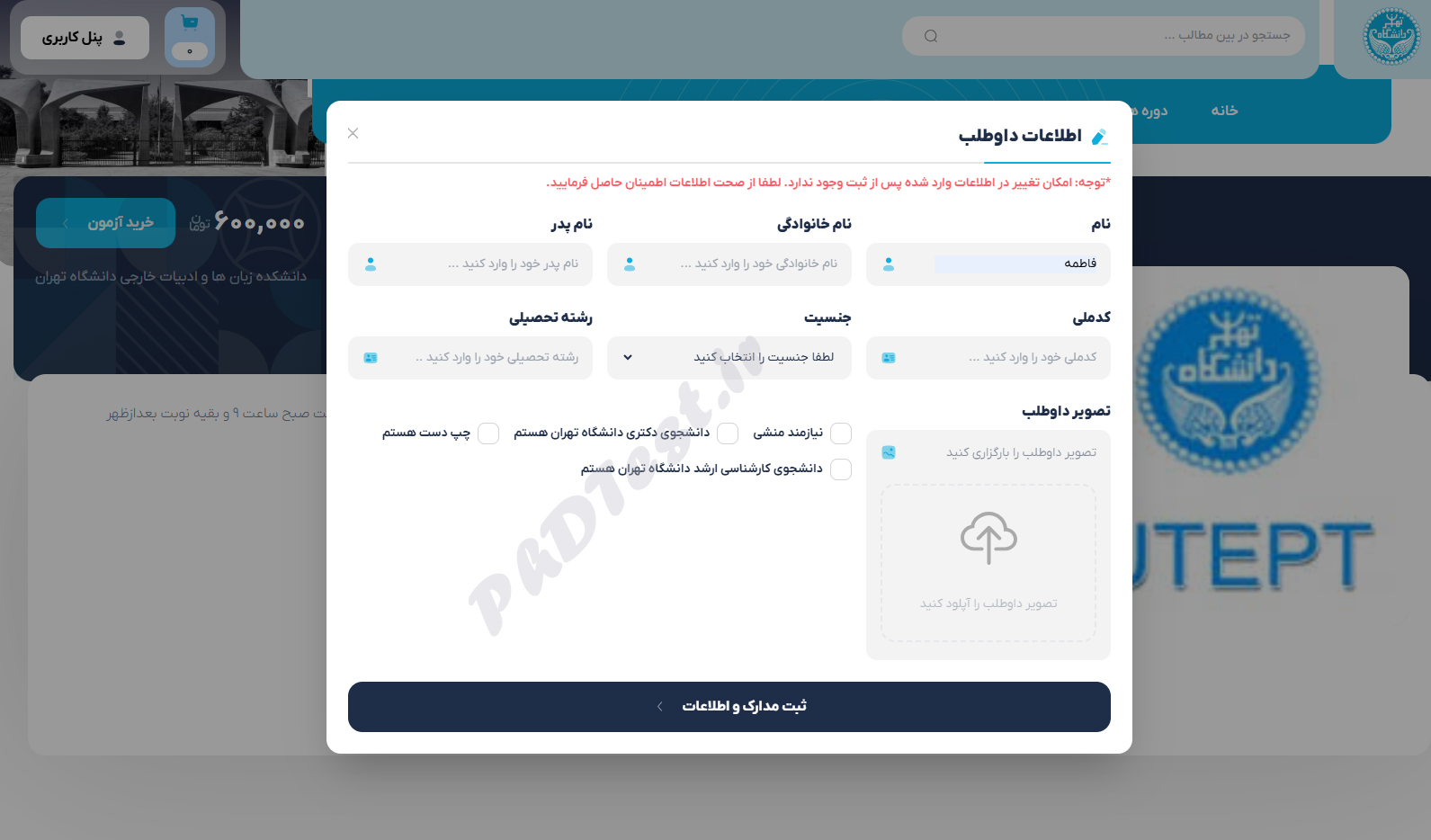 نحوه ثبت نام در آزمون زبان دانشگاه تهران
