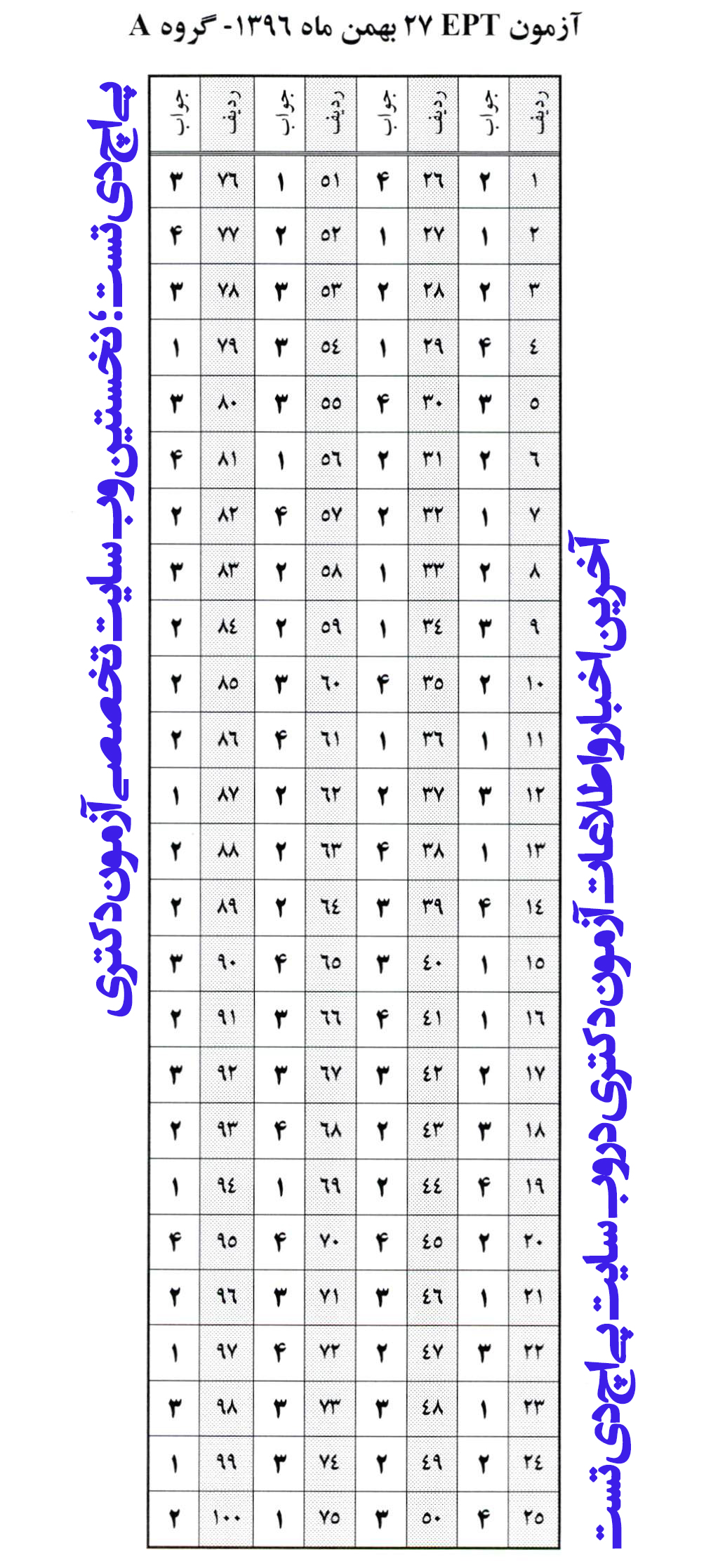 انتشار سؤالات و پاسخنامه آزمون ept بهمن ماه ۹۶