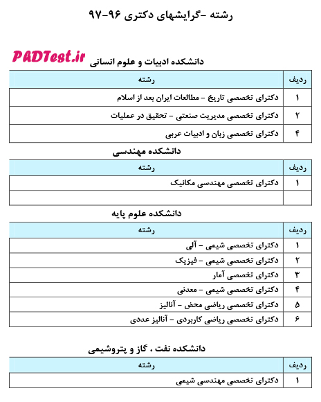 فهرست رشته های دارای پذیرش دکتری بدون آزمون استعدادهای درخشان دانشگاه خلیج فارس در سال تحصیلی ۹۶-۹۷ منتشر شد.