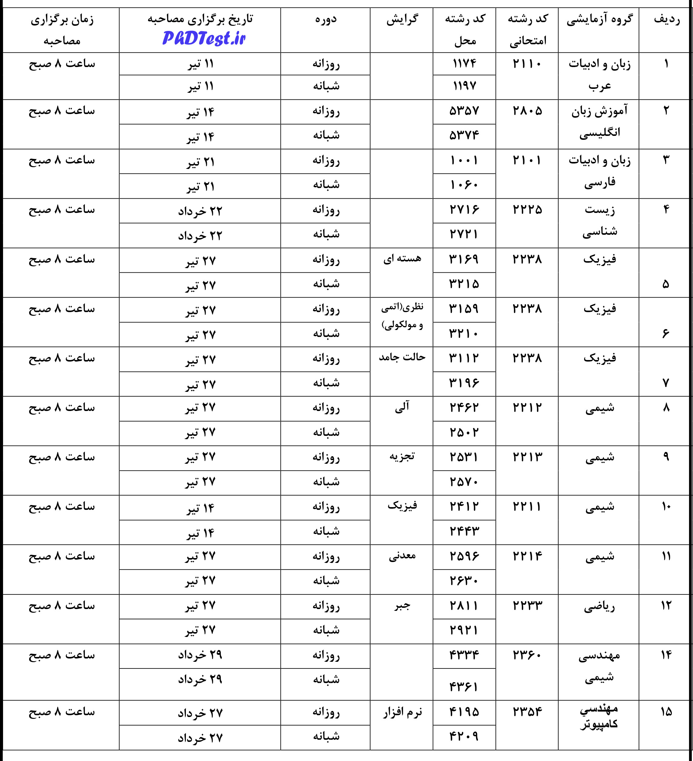 داوطلبان رشته های شیمی، فیزیک، ریاضی، زیست شناسی به دانشکده علوم پایه مراجعه نمایند.