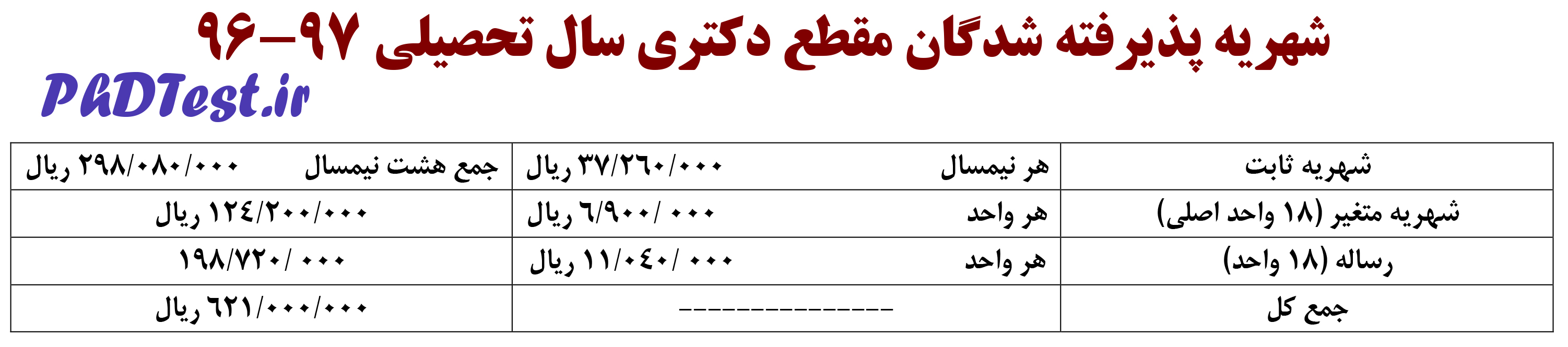 - هزینه هر واحد درس پیش نیاز معادل واحدهای اصلی مقطع دکتری، محاسبه و دریافت می گردد.