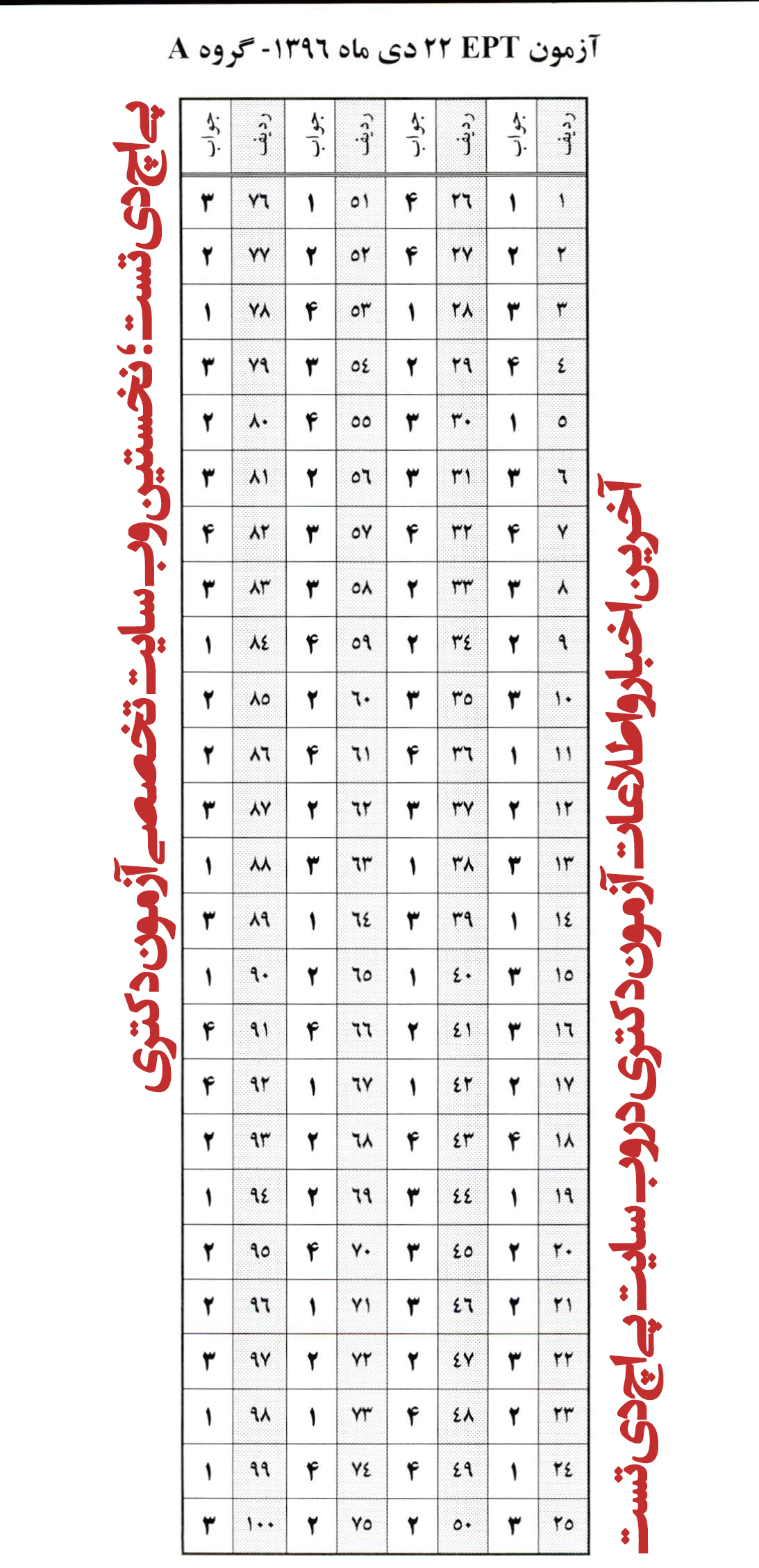 انتشار سؤالات و پاسخنامه آزمون ept دی ماه ۹۶