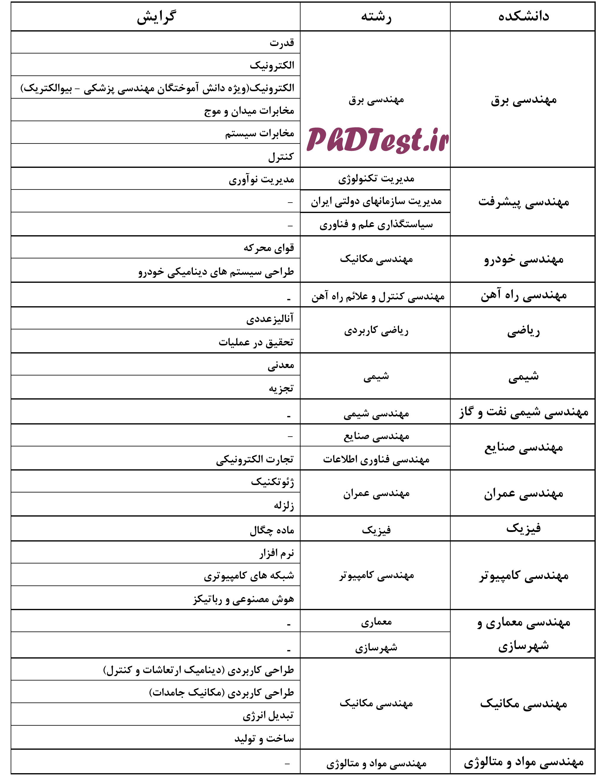 به گزارش پی اچ دی تست، رشته‌های دارای پذیرش دانشجوی دکتری تخصصی بدون آزمون سال تحصیلی 97 – 98 دانشگاه علم و صنعت ایران به شرح جدول زیر است: