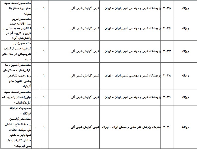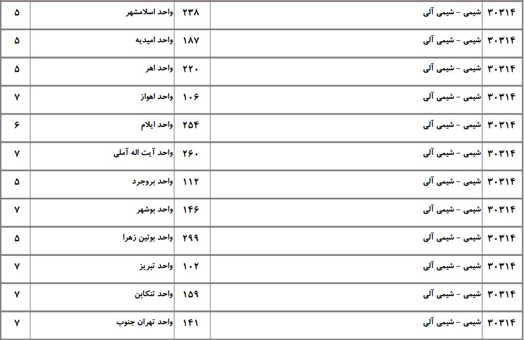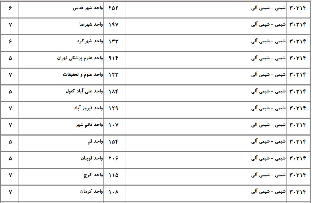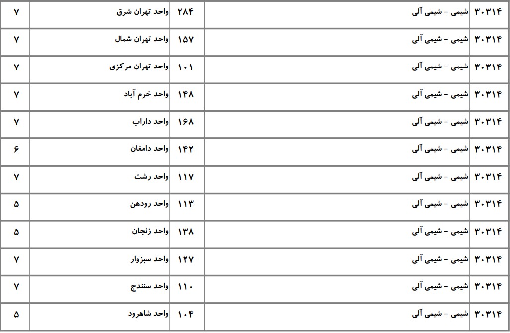 ظرفیت دکتری دانشگاه آزاد در رشته شیمی آلی