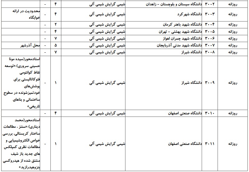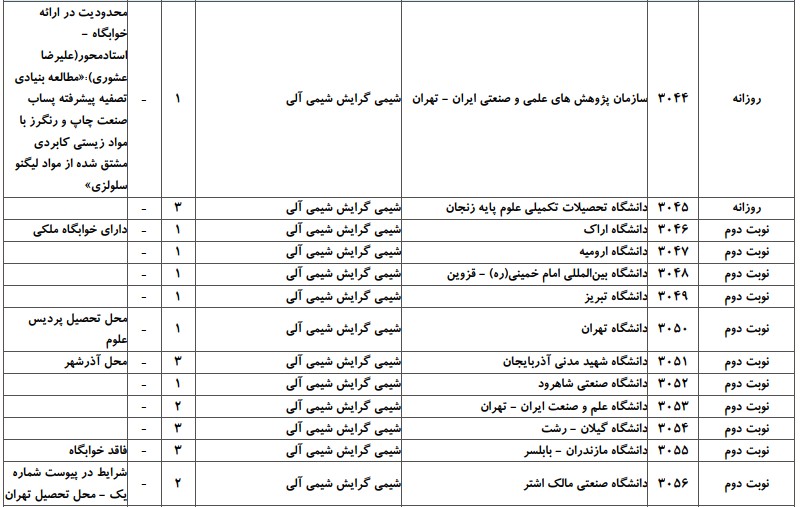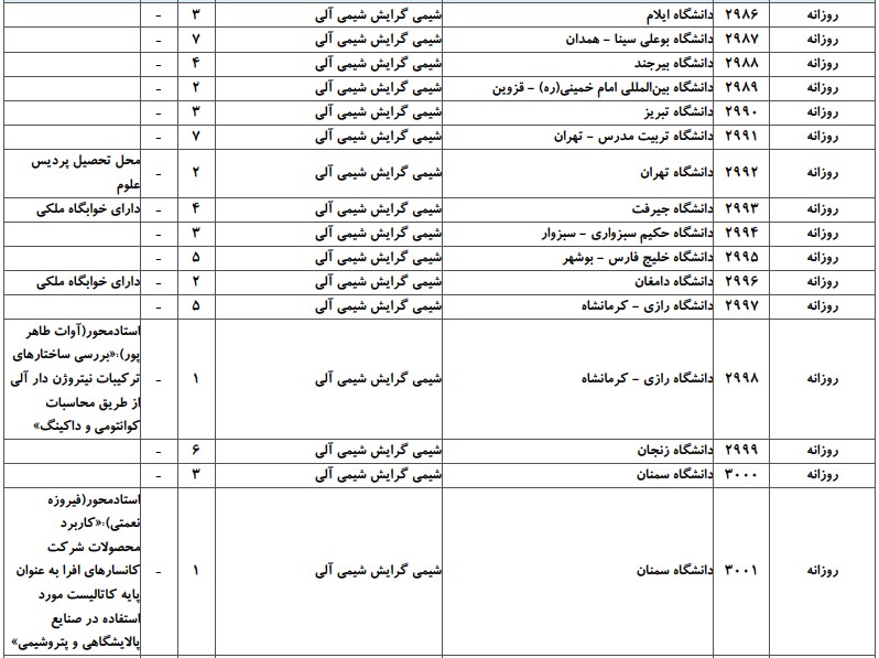 جهت اطلاع داوطلبان گرامی آزمون دکتری، در ادامه فهرست دانشگاههای دولتی دارای پذیرش و ظرفیت پذیرش گرایشهای مختلف دکتری رشته شیمی آلی ارائه شده است: