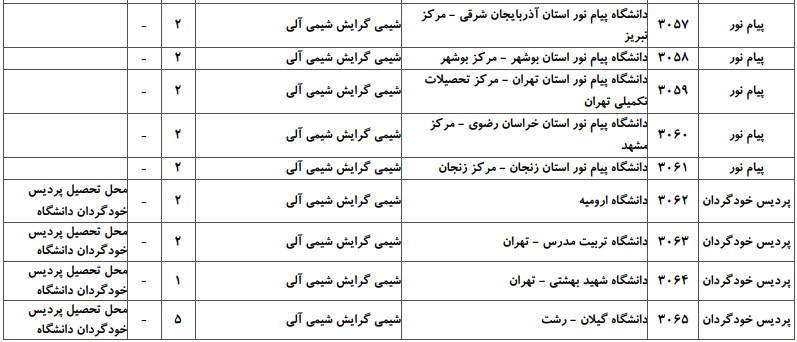 ظرفیت پذیرش دکتری رشته شیمی آلی در دانشگاههای سراسری