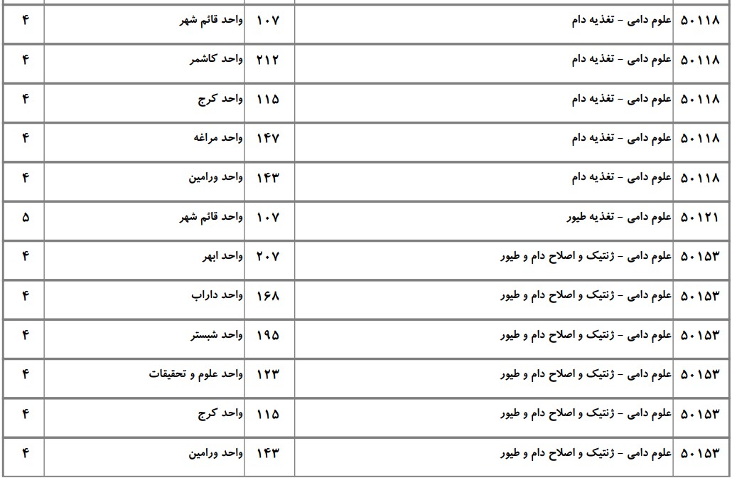 ظرفیت دکتری دانشگاه آزاد در رشته ﻋﻠﻮم دامی
