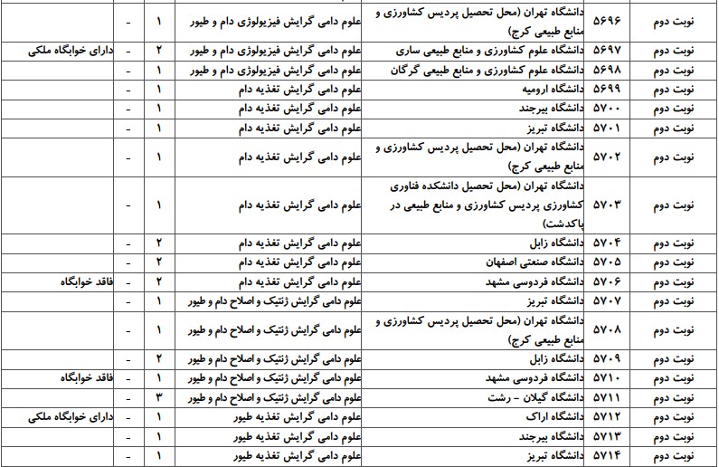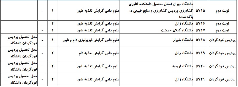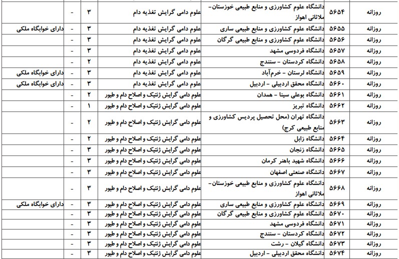 ظرفیت کنکور دکتری رشته ﻋﻠﻮم دامی