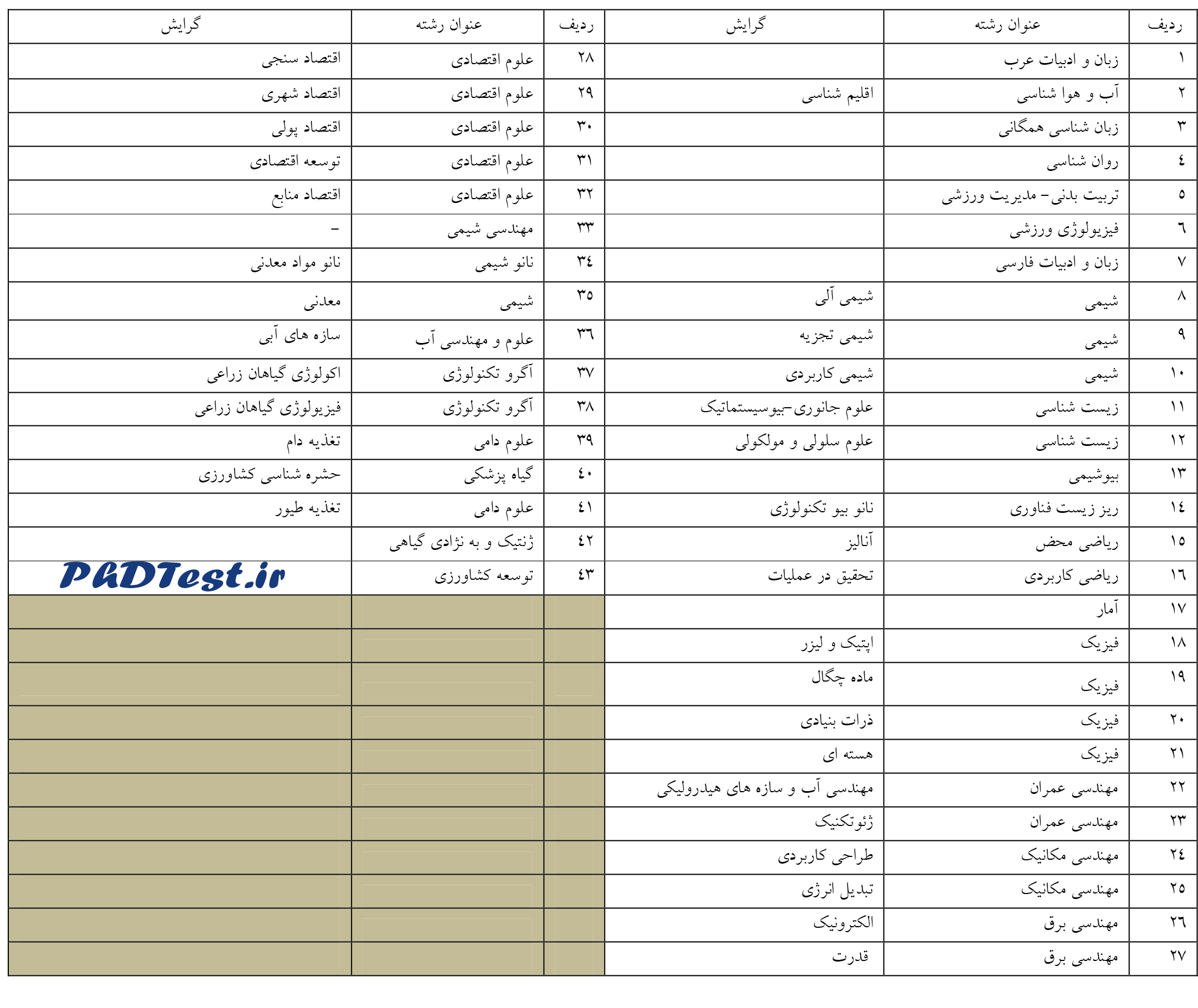 رشته های دارای پذیرش دکتری بدون آزمون سال 97 دانشگاه رازی کرمانشاه