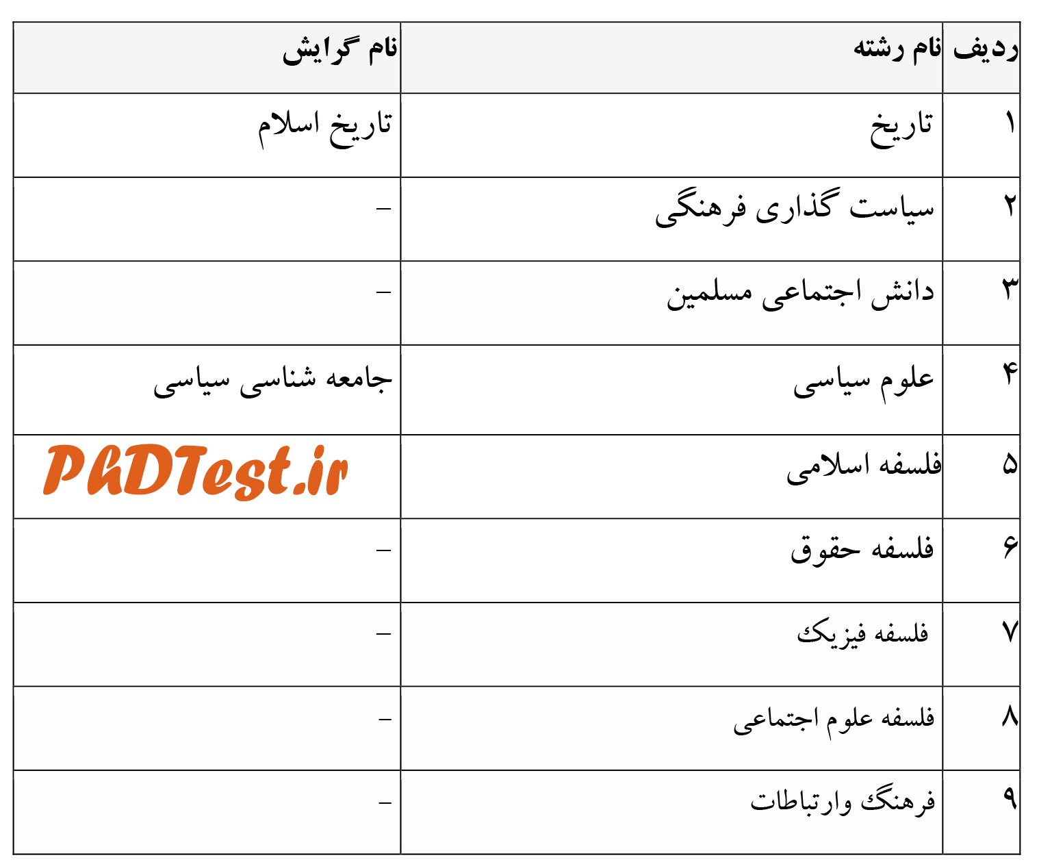 جدول رشته/ گرایشهای دارای پذیرش دکتری بدون آزمون دانشگاه باقرالعلوم سال 97