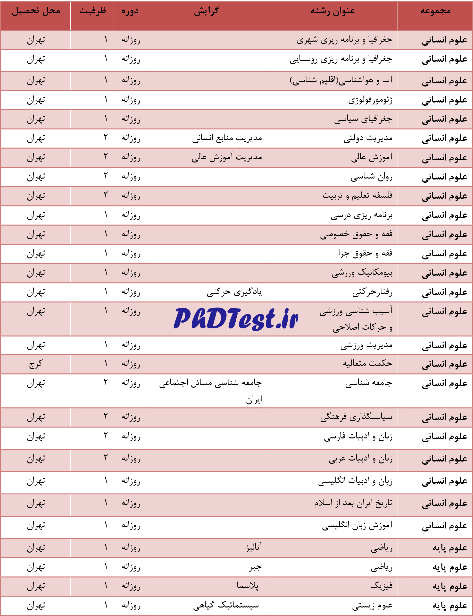 فهرست رشته های دارای پذیرش در مقطع دکتری تخصصی دانشگاه خوارزمی در سال تحصیلی 97-98 به صورت بدون آزمون اعلام شد.