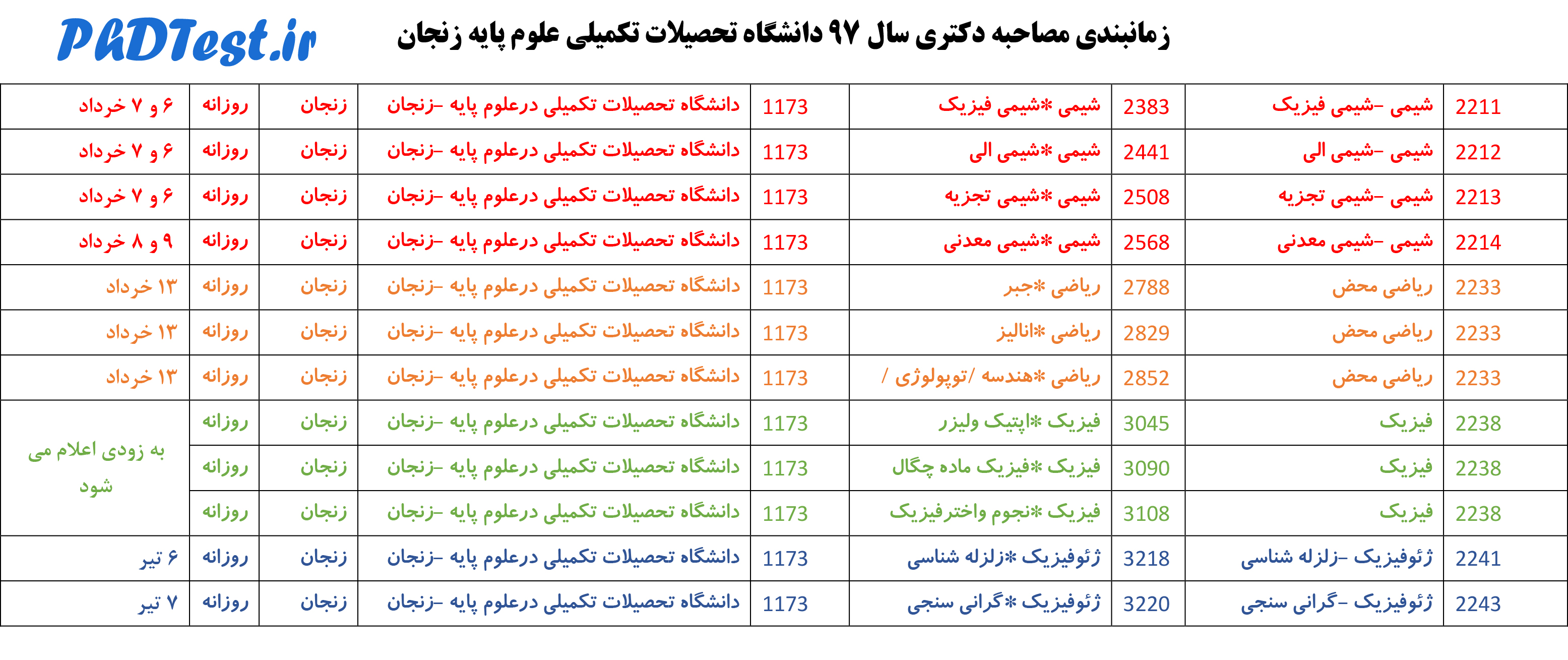 انتشار جزئیات مصاحبه دکتری 97 دانشگاه تحصیلات تکمیلی زنجان