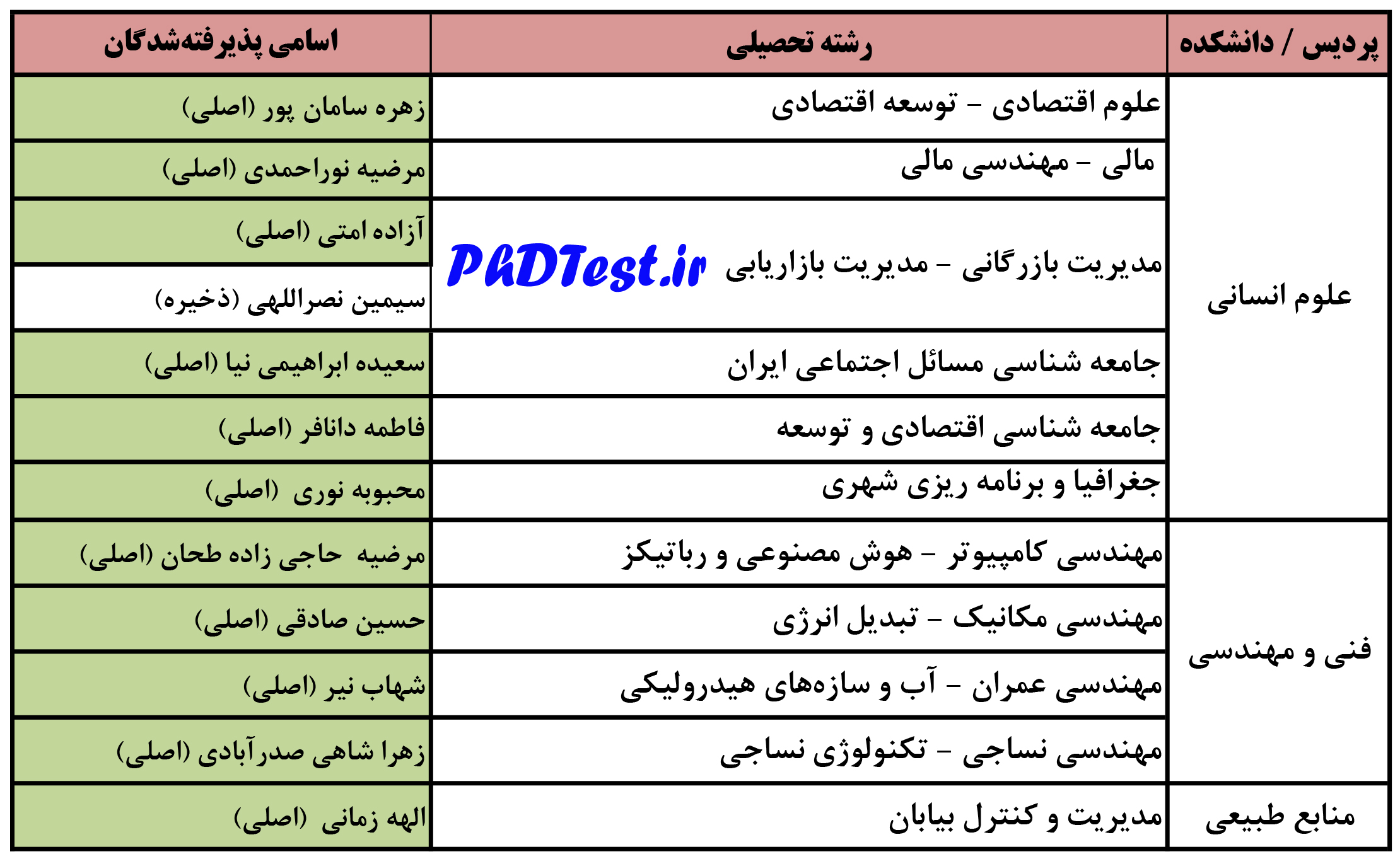 انتشار اسامی پذیرفته شدگان دکتری استعداد درخشان 97 دانشگاه یزد