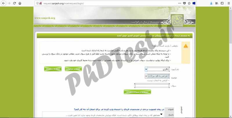 به محض شروع زمان اعتراض به کلید سوالات دکتری 98، این گزینه فعال میشود و داوطلبان عزیز میتوانند نسبت به درج اعتراض خود به پاسخنامه کلیدی منتشرشده از سوی سازمان سنجش اعتراض کنند.