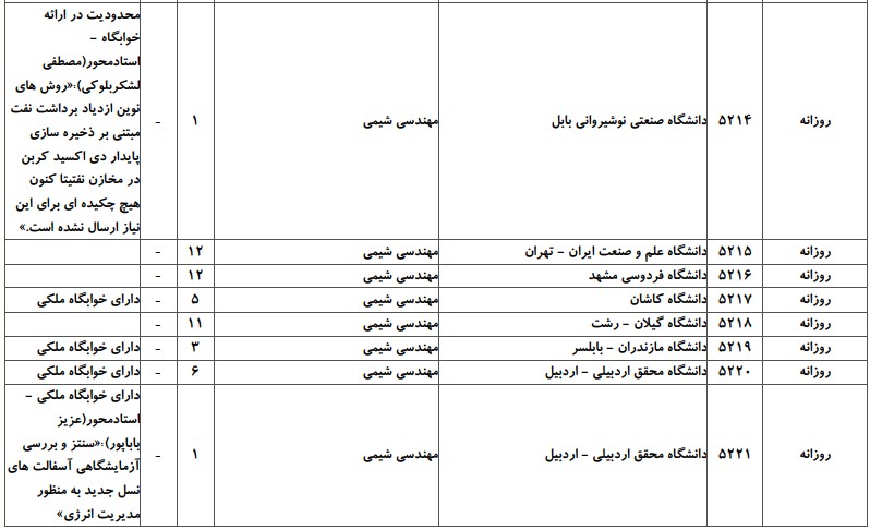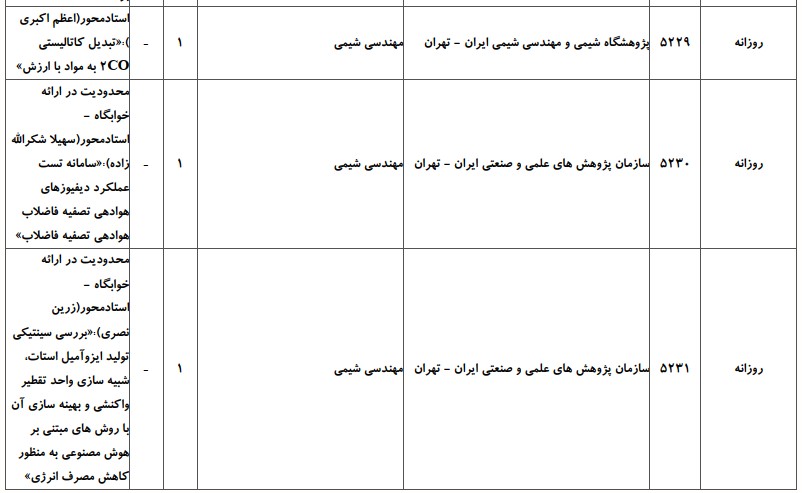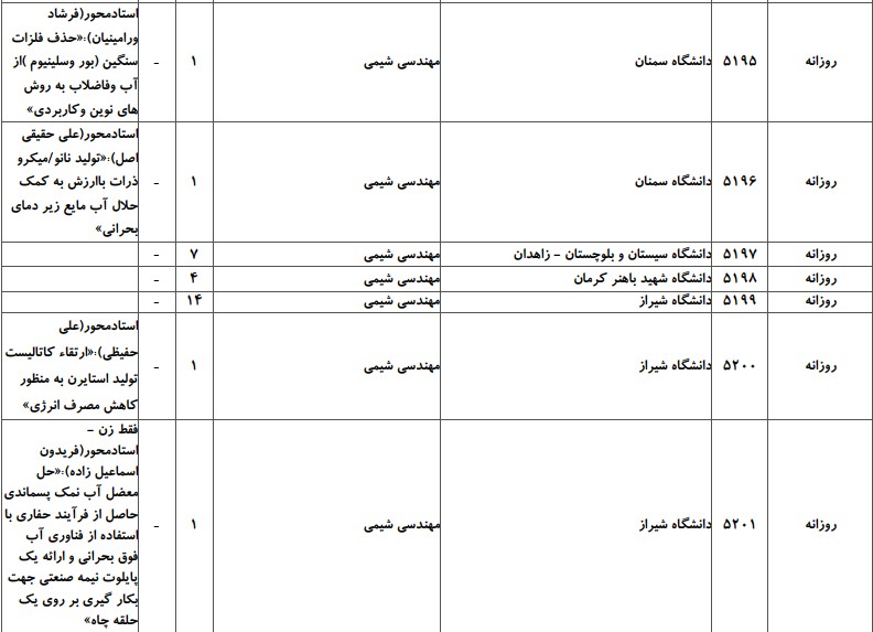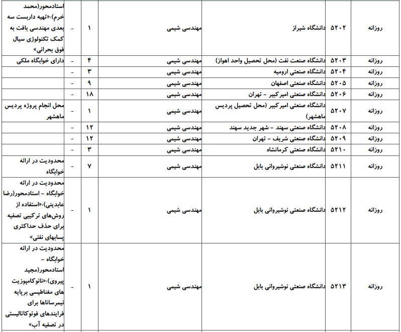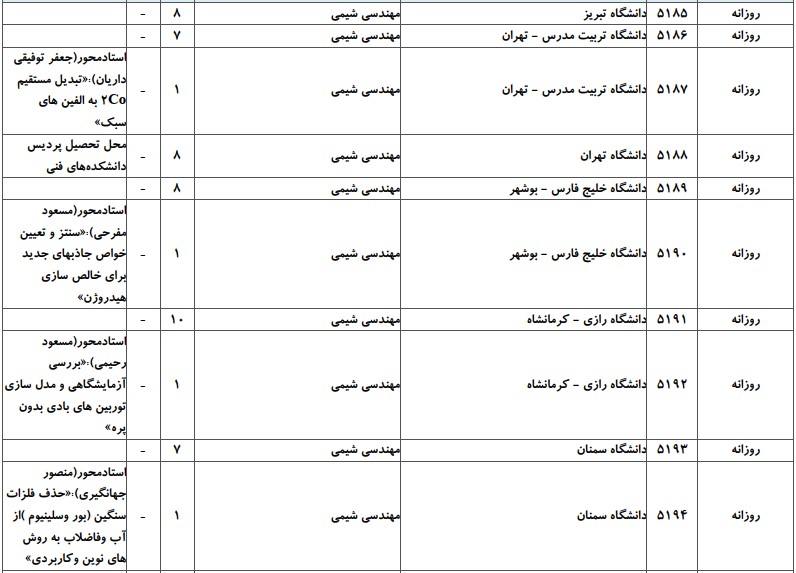 - رشته های مجاز به شرکت در آزمون دکتری مهندسی شیمی