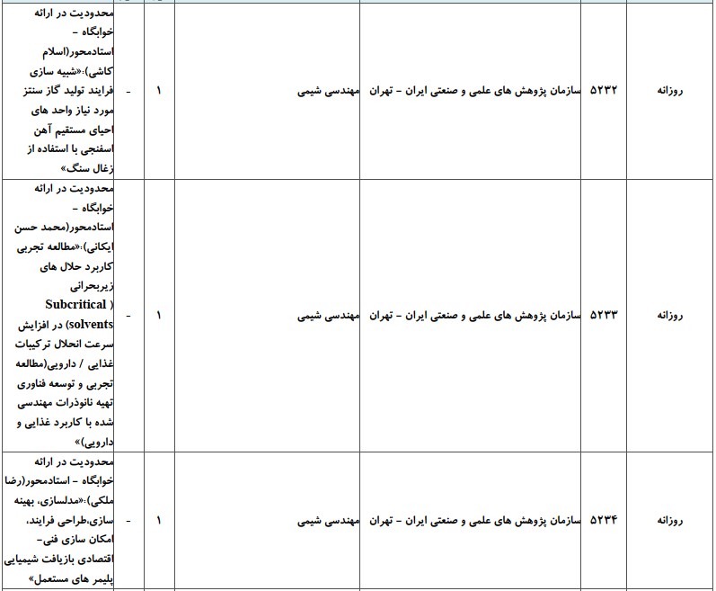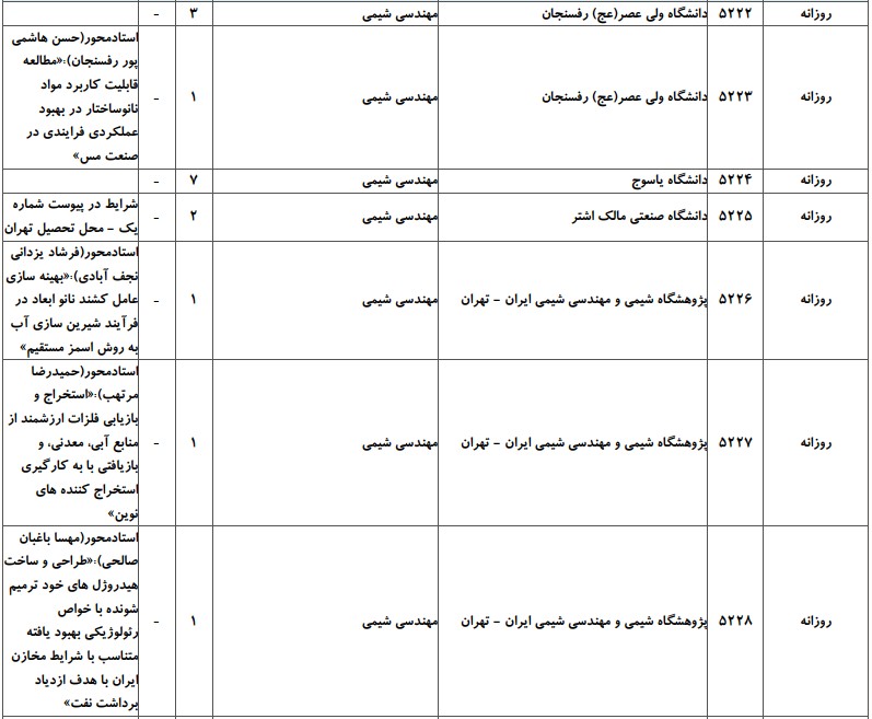 - تراز دعوت به مصاحبه دکتری مهندسی شیمی