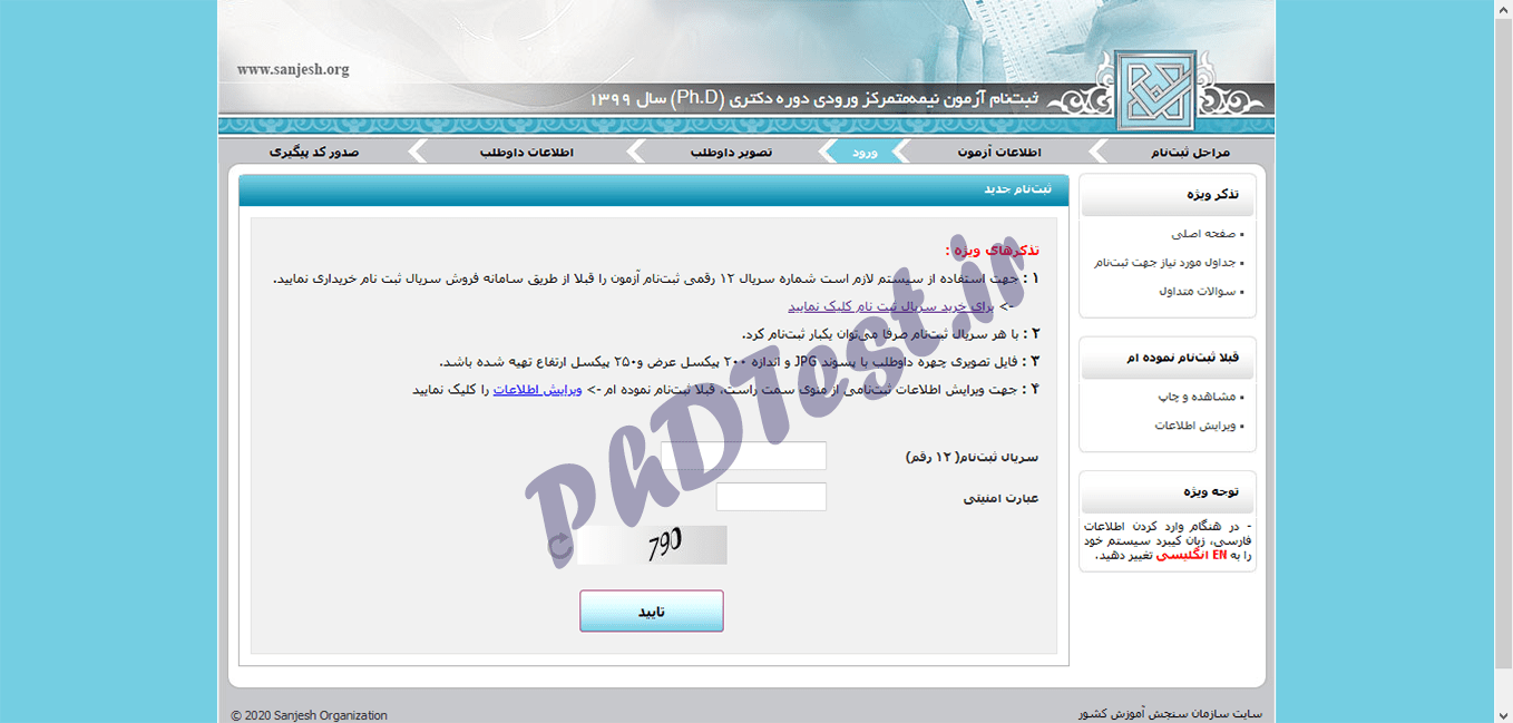 نکته مهم 2: برای اطمینان از این که ثبت نام شما به درستی انجام شده، وارد سامانه ویرایش اطلاعات آزمون دکتری 99 شوید تا مشخصات خود را که در سایت سازمان سنجش درج شده مشاهده کنید.