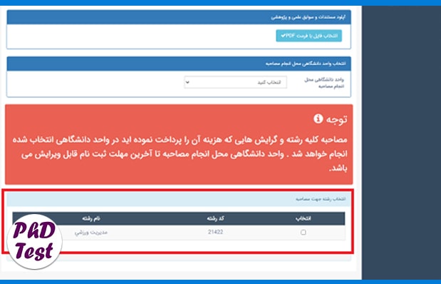 5- رشته خود جهت حضور در مصاحبه دکتری آزاد را انتخاب کنید.