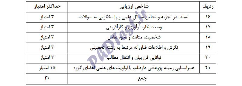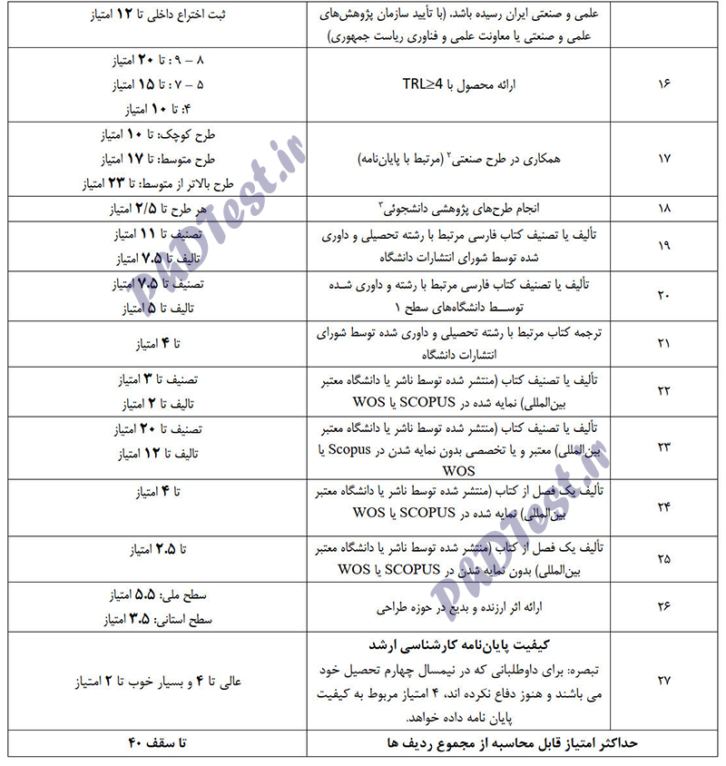 تبصره ۱: کسب حداقل ۷ امتیاز از جدول (امتیازات پژوهشی) الزامی است.