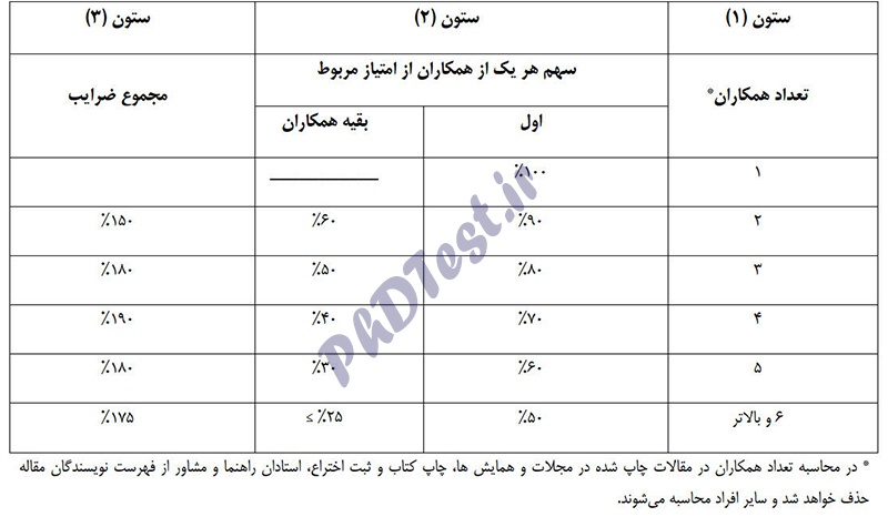 جدول ۱- نحوه محاسبه امتیازات پژوهشی