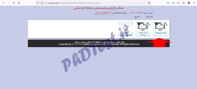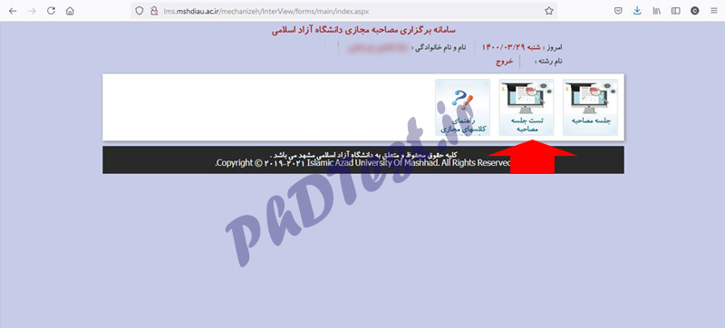5- یک روز پیش از برگزاری مصاحبه دکتری، امکان تست مصاحبه برای شما فراهم خواهد شد. بدین منظور میتوانید به سامانه برگزاری مصاحبه مجازی دکتری دانشگاه آزاد مراجعه کنید.