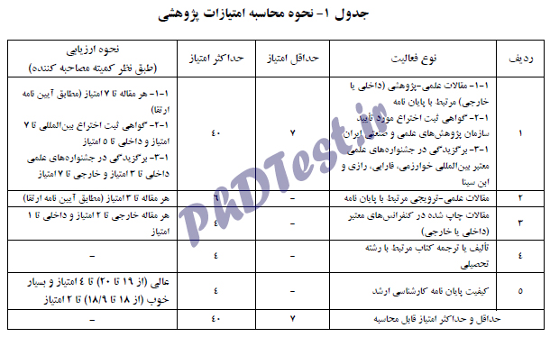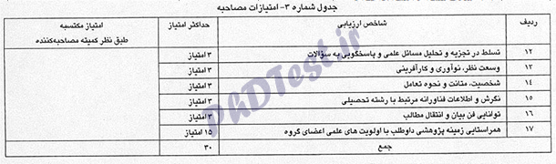 ۶- کسب حداقل۶۰ امتیاز از فعالیتهای آموزشی و پژوهشی و مصاحبه مطابق جداول ارزشیابی شماره ۱، ۲، ۳، و ۴.