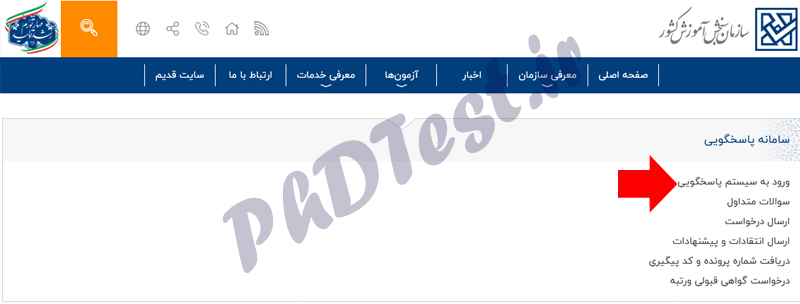 سیستم پاسخگویی سایت سازمان سنجش