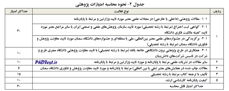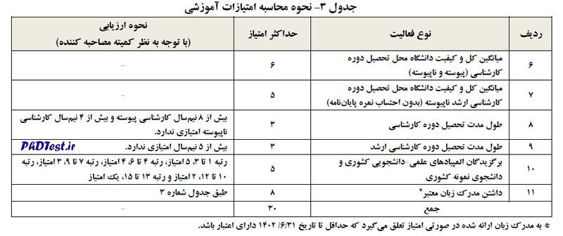 ۲- کسب حداقل ۶۰ امتیاز از فعالیتهای آموزشی، پژوهشی و مصاحبه مطابق جداول ارزشیابی زیر