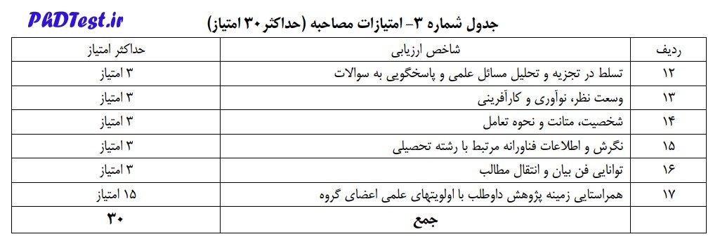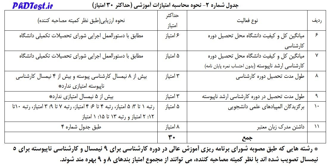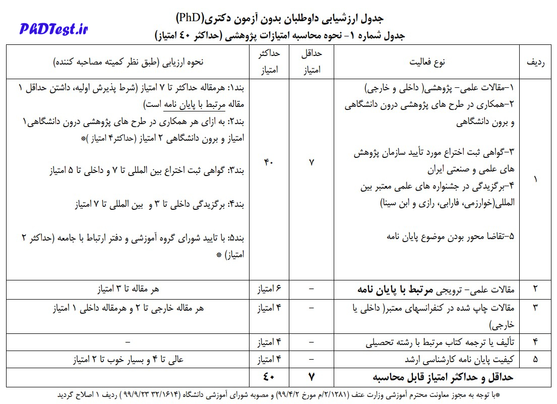 ۷-۱- کسب حداقل ۶۰ امتیاز از فعالیتهای، آموزشی پژوهشی و مصاحبه مطابق جدولهای ارزشیابی پیوست ضروری است.