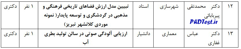 عناوین طرح های دکتری استاد محور ۱۴۰۲ دانشگاه هنر اسلامی تبریز