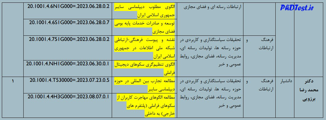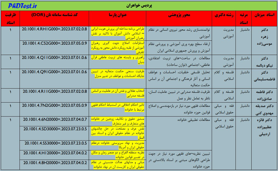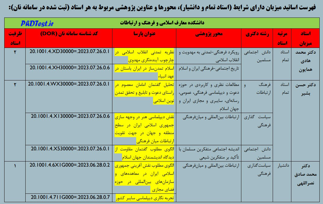 فهرست اساتید میزبان و عناوین پژوهشی دارای پذیرش دکتری استاد محور دانشگاه امام صادق در سال تحصیلی ۱۴۰۲-۱۴۰۳ به شرح زیر هستند: