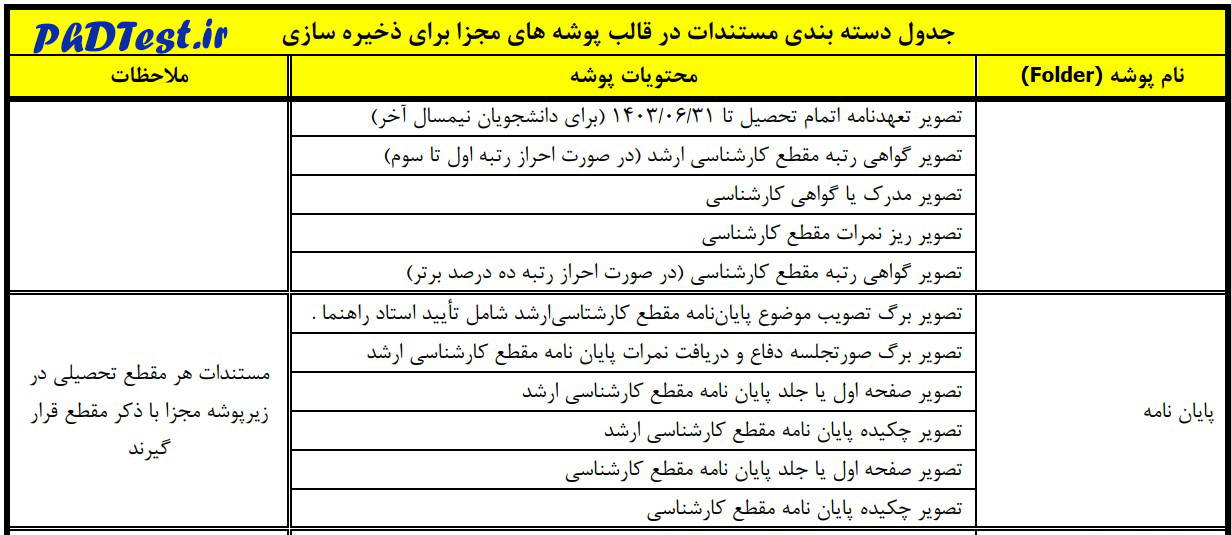 ابتدا پوشه ای بر اساس نام خانوادگی و نام خود ایجاد و سپس زیرپوشه های مشروحه زیر را درون آن ایجاد و مستندات را به صورت دسته بندی شده در آن ذخیره فرمایید.