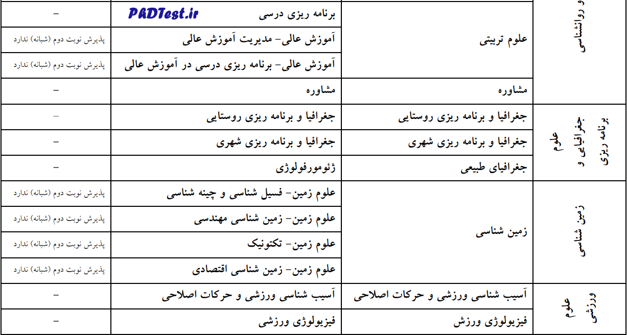 تبصره ۱: در برخی از رشتههای دارای پذیرش، علاوه بر پذیرش نوبت اول (روزانه)، پذیرش نوبت دوم (شبانه با پرداخت شهریه) نیز انجام میشود و متقاضیان در صورت تمایل میتوانند برای پذیرش نوبت دوم نیز درخواست دهند.