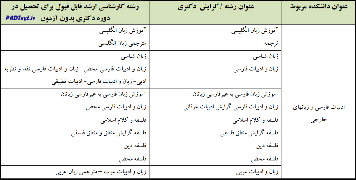 جداول ارزشیابی داوطلبان بدون آزمون دکتری