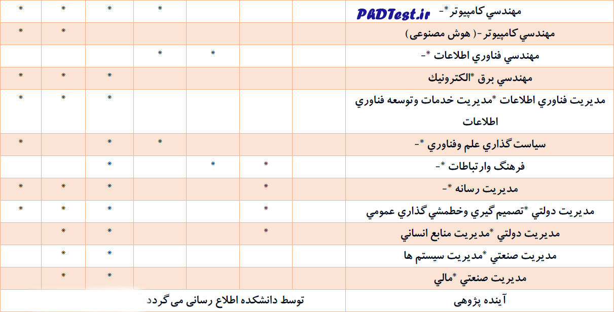 تذکر مهم: رشته‌های جدول زیر ویژه شاغلین رسمی نیروهای مسلح می‌باشد، لذا سایر داوطلبان محترم از ثبت‌نام در این رشته‌ها و پرداخت هزینه خودداری نمایند.