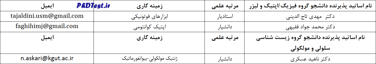 جدول ۲: اطلاعات اساتید پذیرنده دانشجوی دانشگاه تحصیلات تکمیلی صنعتی و فناوری پیشرفته کرمان