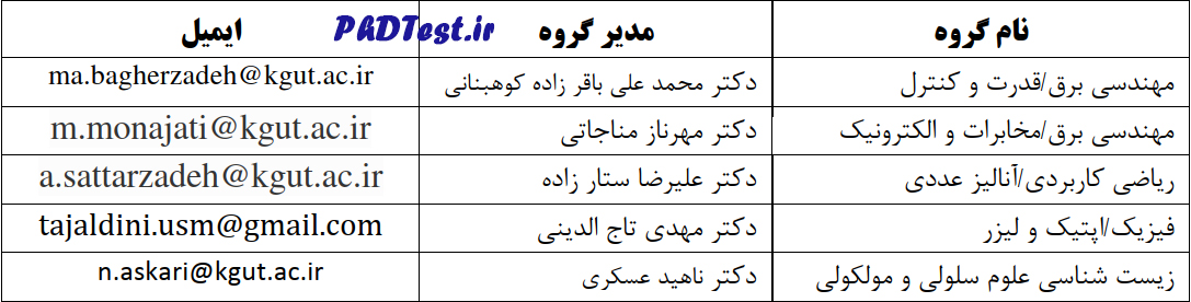 جدول ۳: اطلاعات مدیران گروههای پذیرنده دانشجوی دکتری دانشگاه تحصیلات تکمیلی صنعتی و فناوری پیشرفته کرمان