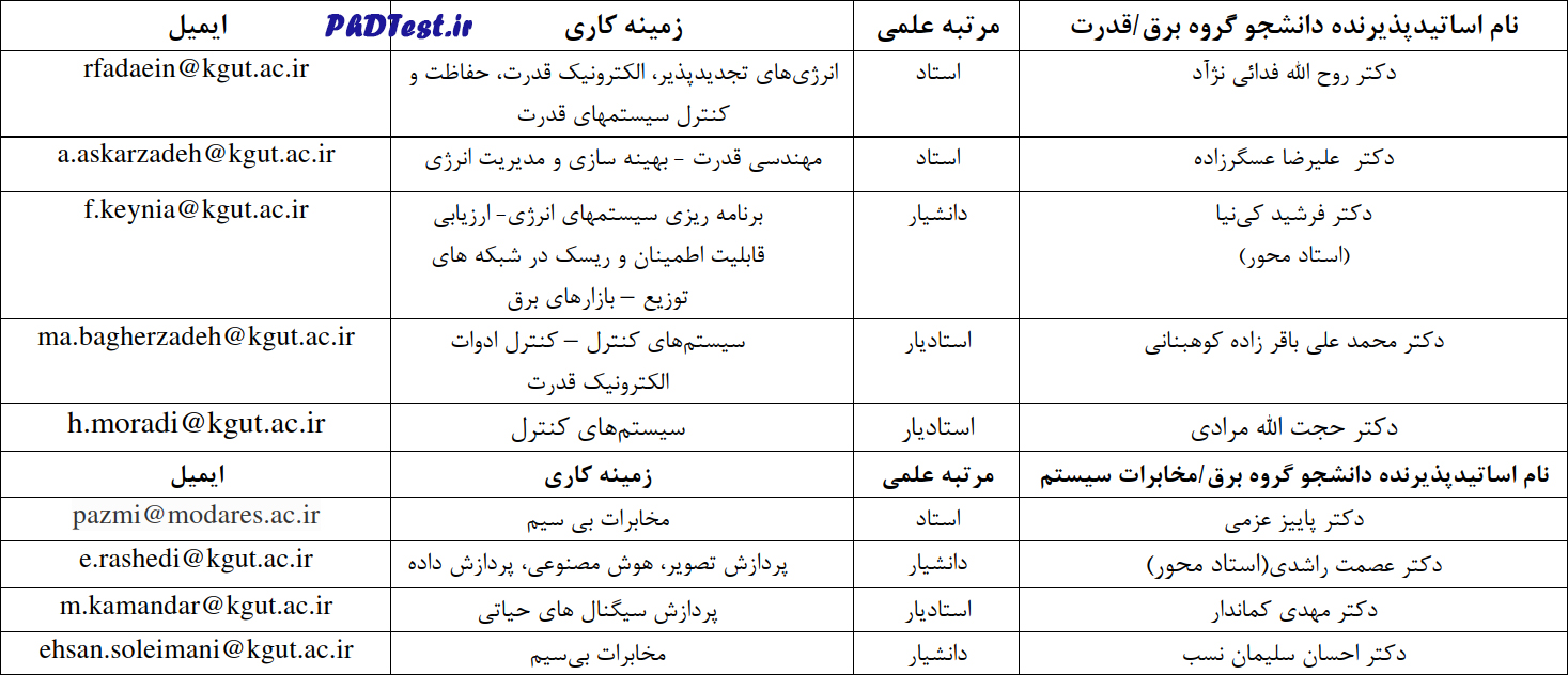 جدول ۲: اطلاعات اساتید پذیرنده دانشجوی دانشگاه تحصیلات تکمیلی صنعتی و فناوری پیشرفته کرمان