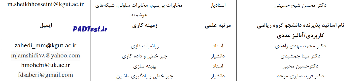 جدول ۳: اطلاعات مدیران گروههای پذیرنده دانشجوی دکتری دانشگاه تحصیلات تکمیلی صنعتی و فناوری پیشرفته کرمان