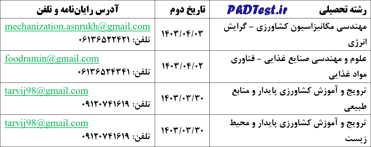 | مهندسی مکانیزاسیون کشاورزی – گرایش انرژی | ۱۴۰۳/۰۳/۲۲ |