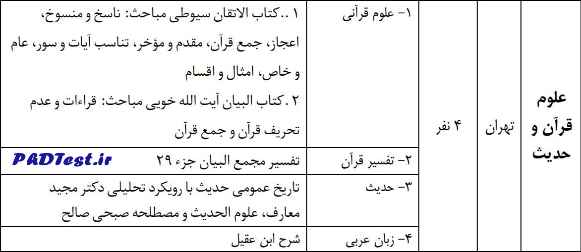ظرفیت رشته ها و منابع آزمون دکتری دانشگاه مذاهب اسلامی ۱۴۰۳