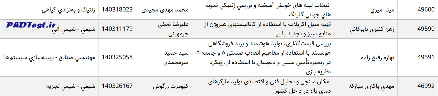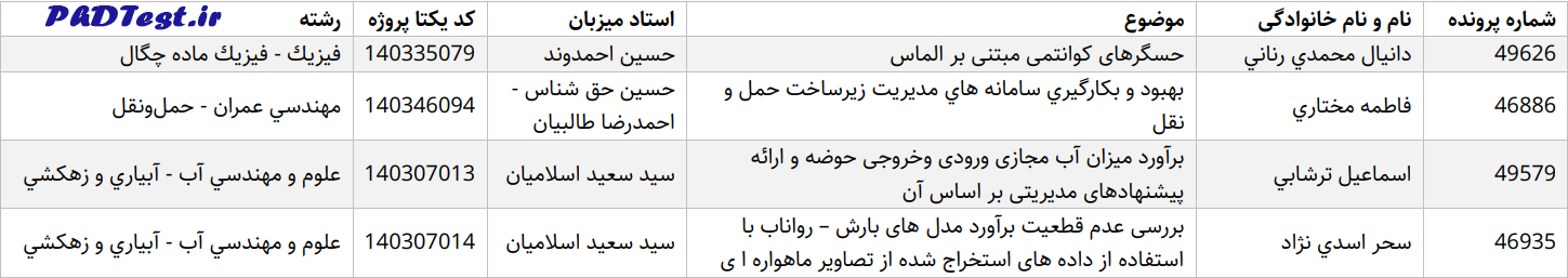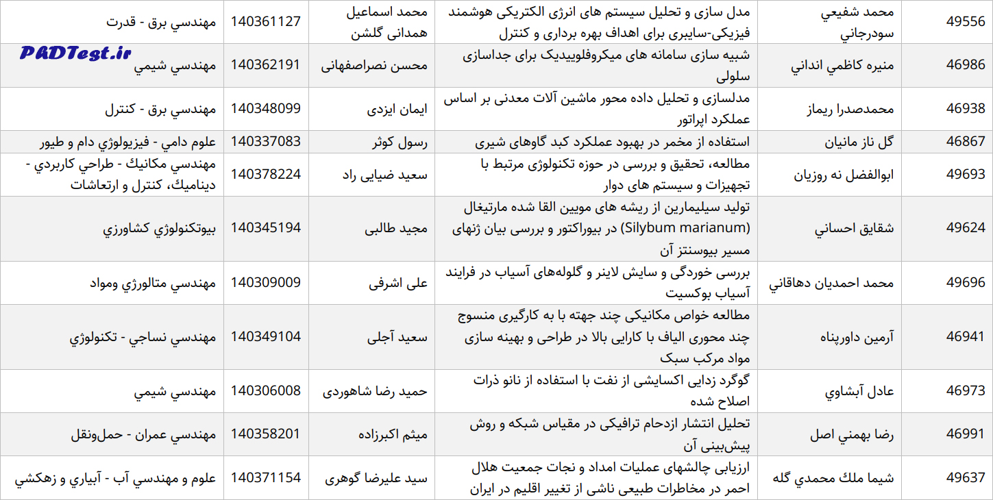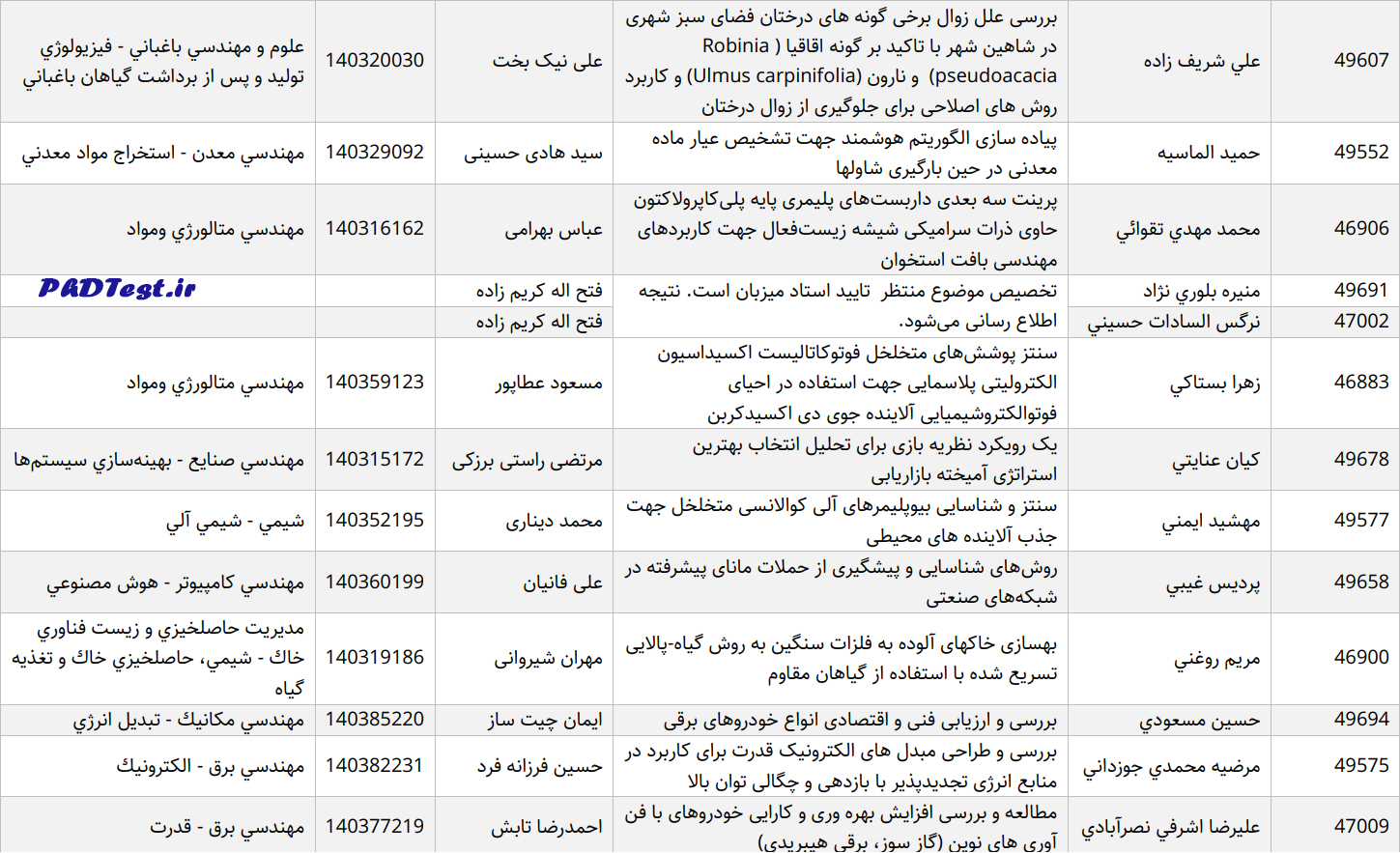 اسامی پذیرفته شدگان دکتری بدون آزمون استاد محور دانشگاه صنعتی اصفهان برای سال تحصیلی ۱۴۰۳-۱۴۰۴ به شرح جدول زیر است: