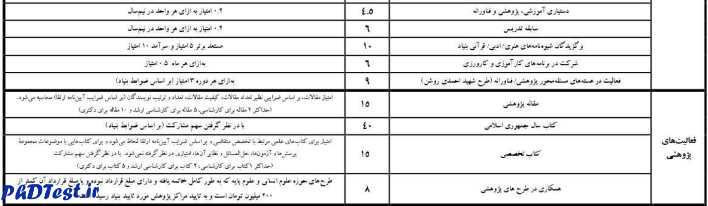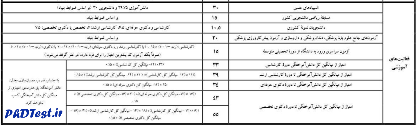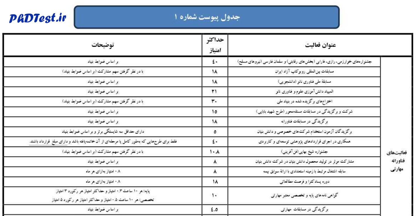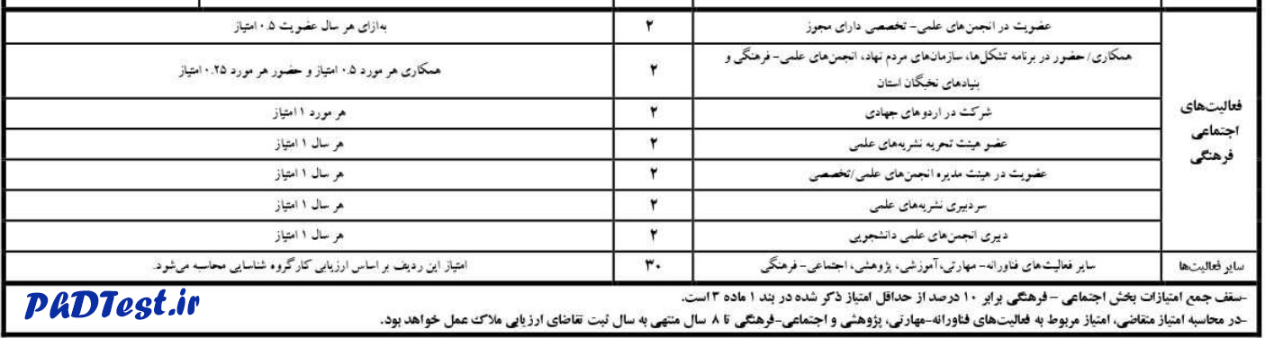 تبصره ۴- امتیاز حاصل از دوره پسا دکتری بر اساس جدول پیوست (۱) محاسبه می شود.