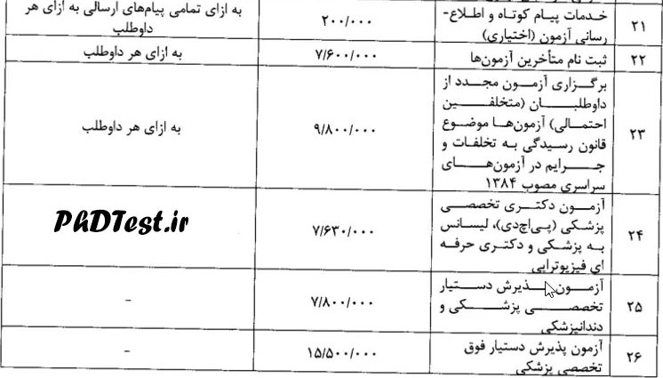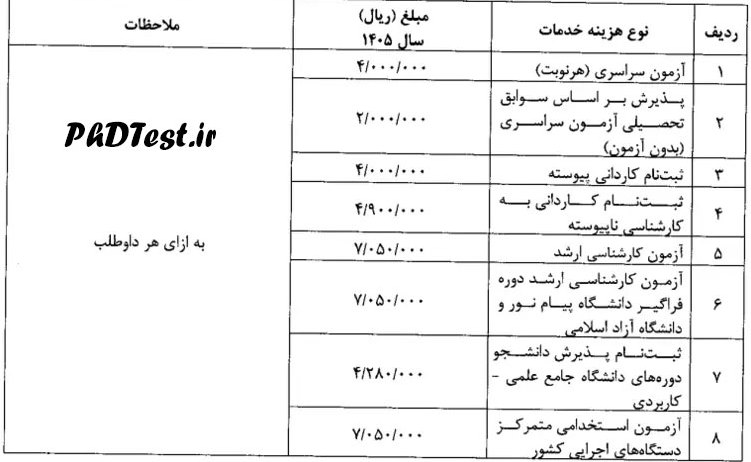 هزینه ثبت نام آزمون دکتری ۱۴۰۵