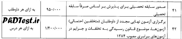 ۱- هزینه خدمات ثبت نام دریافتی از داوطلبان شرکت در آزمونهای سازمان سنجش آموزش کشور در سال ۱۴۰۵ مطابق پیشنهاد سازمان یاد شده و توافق وزارت علوم، تحقیقات و فناوری و سازمان برنامه و بودجه کشور به شرح جدولهای زیر تعیین میشود.