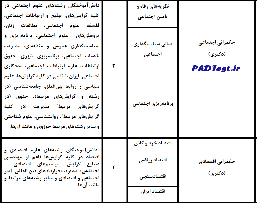جدول ظرفیت پذیرش رشته های حکمرانی مقطع دکتری