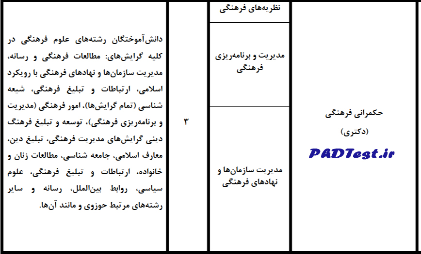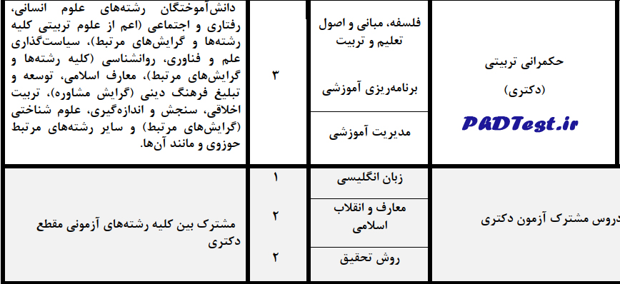 جدول شماره ۱: مواد آزمون رشته‌های مرتبط با رشته آزمون دکتری
