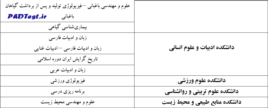 رشتههای دارای پذیرش دکتری بدون آزمون استعدادهای درخشان دانشگاه بیرجند برای سال تحصیلی ۱۴۰۵-۱۴۰۶ به شرح زیر هستند:
