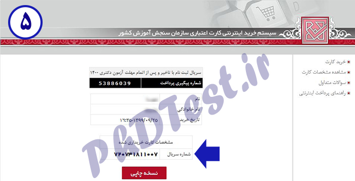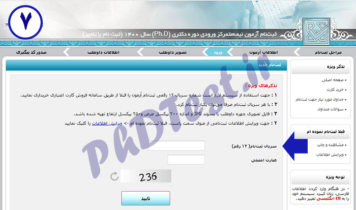 5- شماره سریال ثبت نامی را یادداشت کنید تا در ادامه بتوانید با استفاده از آن، وارد سامانه ثبت نام با تاخیر آزمون دکتری 1401 شوید و نسبت به ثبت نام اقدام کنید.